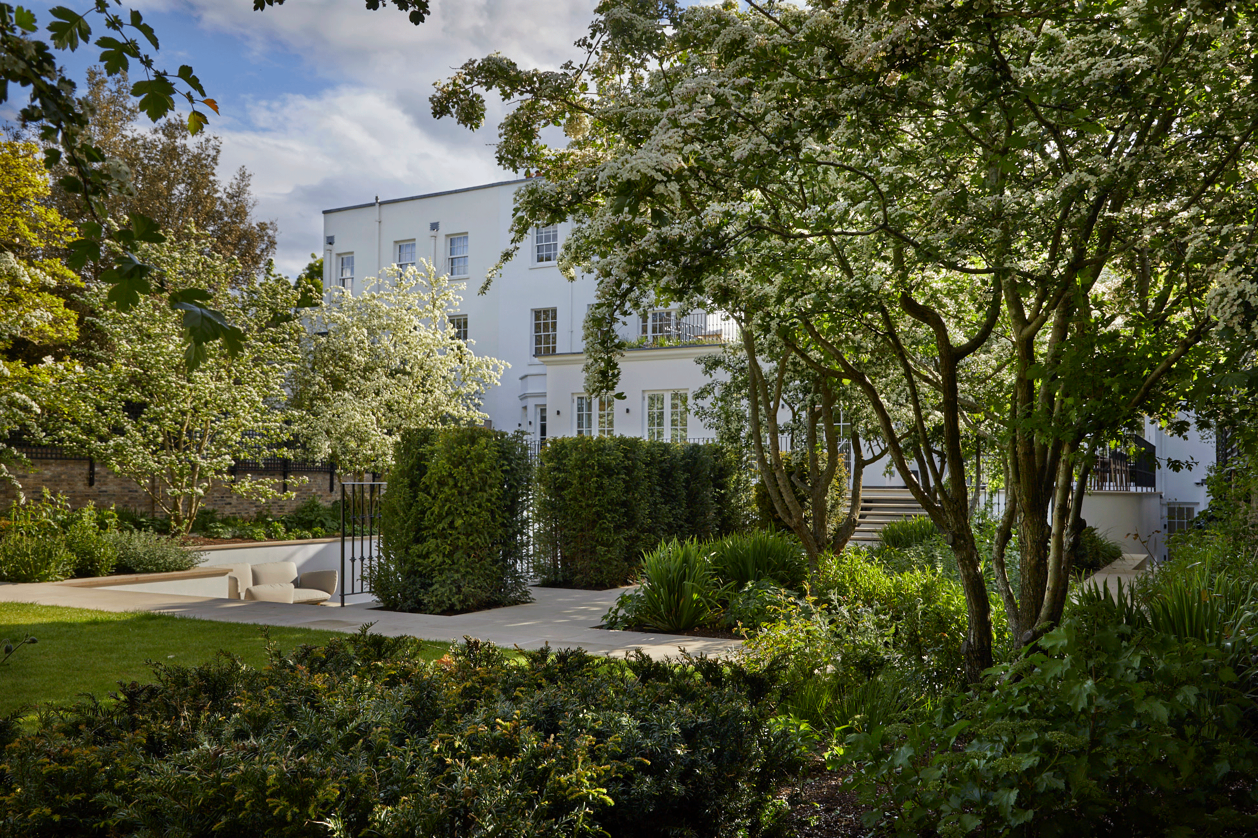 Our client’s interest in referencing the history of Holland Park, once farmland, is reflected in the soft landscaping and a mix of hawthorns, field maples, elders and foraging plants.